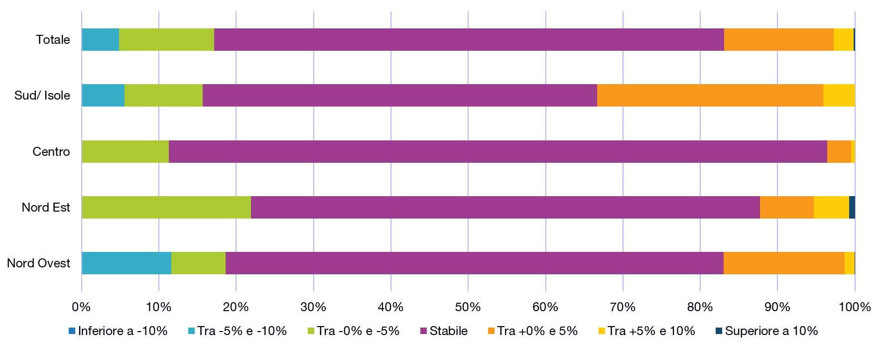 La spesa ICT per il 2018 è prevista in accelerazione nelle regioni del Sud Italia, dove oltre il 33% delle imprese attendono una crescita dei budget fino al 10%. Altre regioni esprimono una maggiore cautela rispetto alle prospettive di spesa del prossimo anno: il 22% delle imprese del Nord Est indica una riduzione dei budget fino al 5%, mentre il 19% del Nord Ovest segnala una contrazione in alcuni casi fino al 10%. Prevale una sostanziale stabilità nelle aspettative delle regioni del Centro Italia, dove l’85% delle imprese prevede di mantenere inalterate le traiettorie di spesa per il 2018.