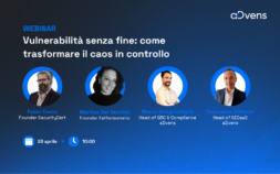Webinar, 23 aprile 2026 ore 10:00. Una discussione pratica sulle sfide reali del Vulnerability Management in ambienti complessi: tre professionisti che raccontano esperienze, sfide e soluzioni maturate sul campo e come una gestione più matura possa generare valore tangibile per l’azienda. Organizzato dal socio Advens.