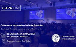 Bologna, 28 e 29 ottobre 2026. 16ª edizione della Conferenza Nazionale dedicata alla privacy, cybersecurity e dataprotection. Anche per l’edizione 2026, il GDPR Day sarà un momento di aggiornamento qualificato e di confronto operativo sui temi della Privacy, della Data Protection e della Cyber Security, rivolto a imprese, pubbliche amministrazioni e professionisti, tutti chiamati a rispondere alle sfide sempre crescenti della protezione dei dati e delle informazioni. Sconto riservato ai soci e valido su tutti i biglietti.