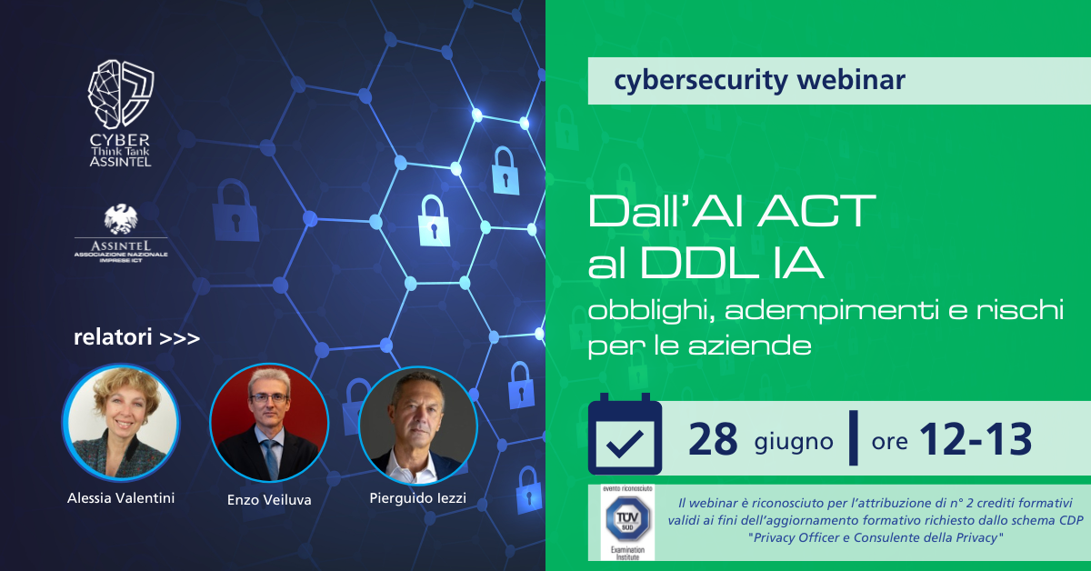 Il webinar intende illustrare i capisaldi dell’AI ACT, le caratteristiche del DDL italiano attualmente in fase di analisi al Senato, approfondendo opportunità contrapposte a obblighi, adempimenti e rischi che possono interessare le PMI italiane.