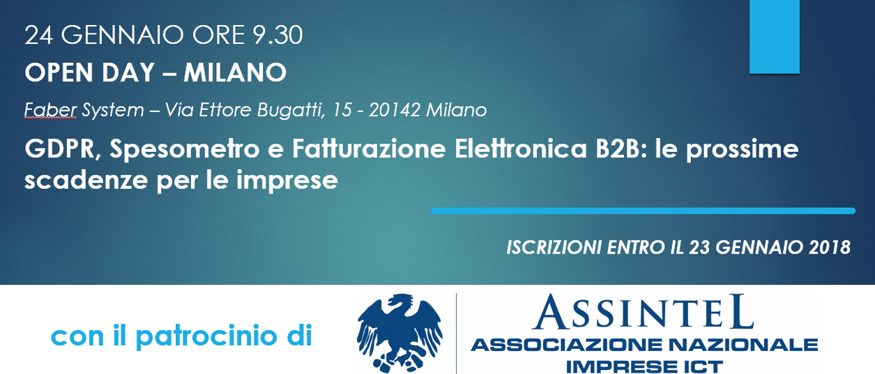L'Open Day si terrà mercoledì 24 gennaio dalle ore 9.30 alle ore 12.30 presso la sede di Faber System in Via Ettore Bugatti, 15 - 20142 Milano.