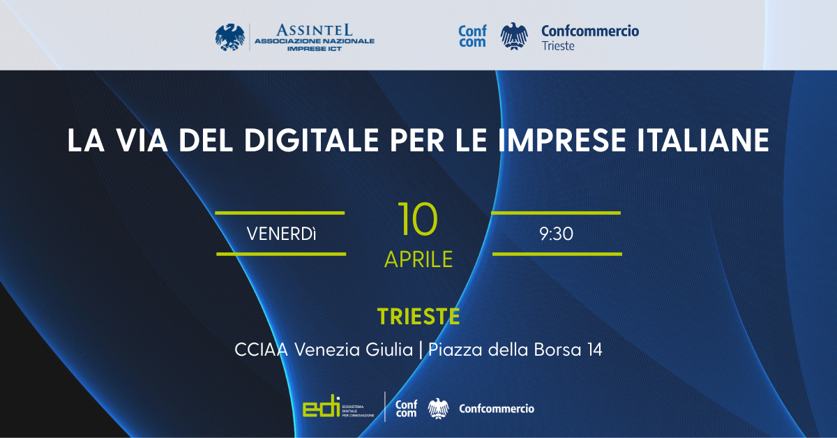 Trieste, 10 aprile 2026 ore 9:30. Focus dell’incontro è l’intelligenza artificiale come leva di competitività per le imprese, a partire dai dati più recenti dell’Assintel Report che fotografano lo stato della digitalizzazione delle PMI italiane. A seguire uno spazio è dedicato ai servizi a supporto dell’innovazione di EDI Confcommercio con i suoi sportelli SPIN e ad un confronto con le imprese corporate.