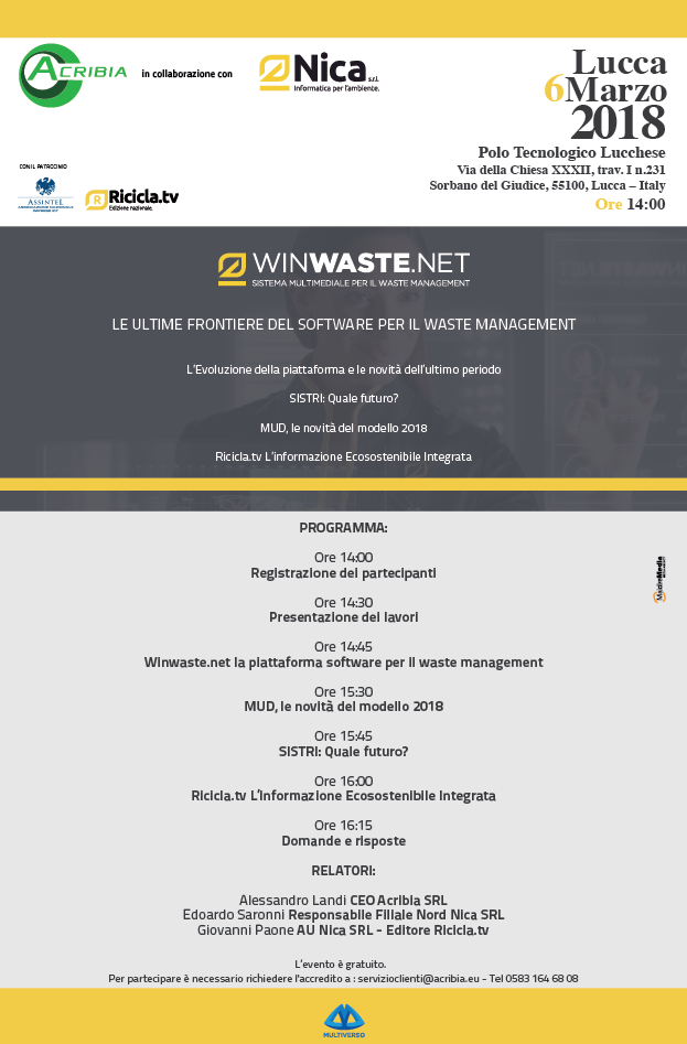 Evento gratuito - Per info e iscrizioni servizioclienti@acribia.eu