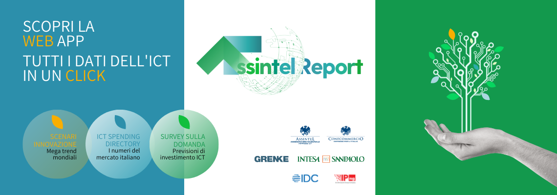 Assintel Report è la ricerca che mette in luce le dinamiche dell’innovazione nel nostro mercato. Il suo cuore è costituito dalla survey sull'orientamento della Domanda delle aziende, che crea un outlook previsionale sui trend di andamento del mercato ICT. Da quest'anno Assintel Report evolve e diventa completamente online, guardando al futuro con un mindset digitale. Puoi registrarti e consultare liberamente i dati, creando il tuo personale My Report, con infinite viste e grafici personalizzati.
